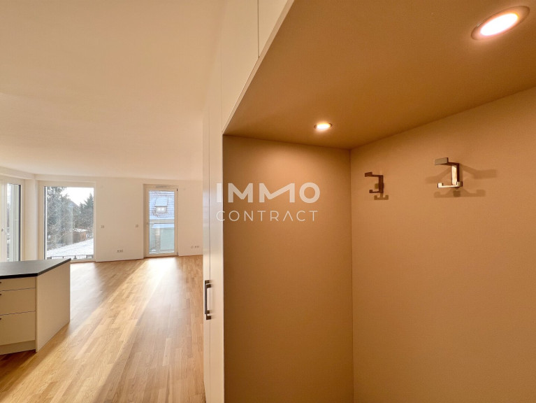 Die Wohnung überzeugt durch eine maßgefertigte Tischlerküche in modernem Design sowie einen hochwertigen Dielenschrank in charmanter Farbgebung, mit integriertem Waschmaschinenanschluss und beleuchteter Garderobe. Alle Wohnräume sind mit edlen Eichenparkettböden ausgestattet und verfügen über elektrische Außenjalousien für optimalen Sonnenschutz.