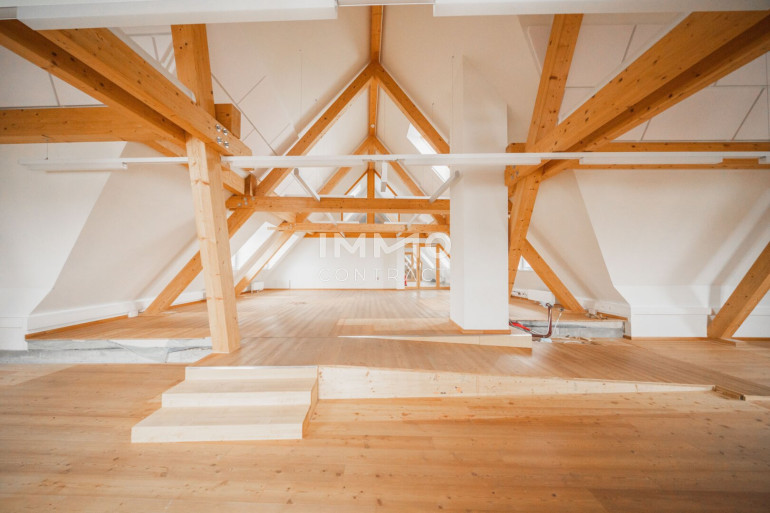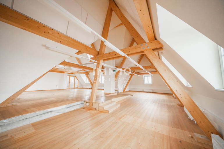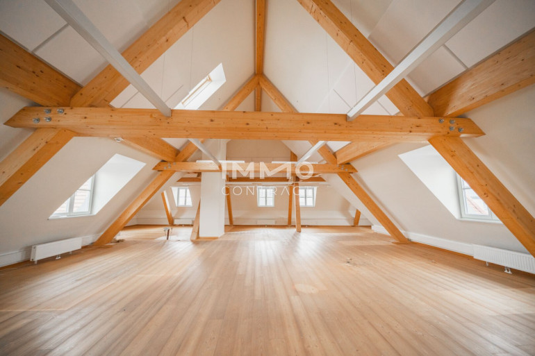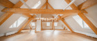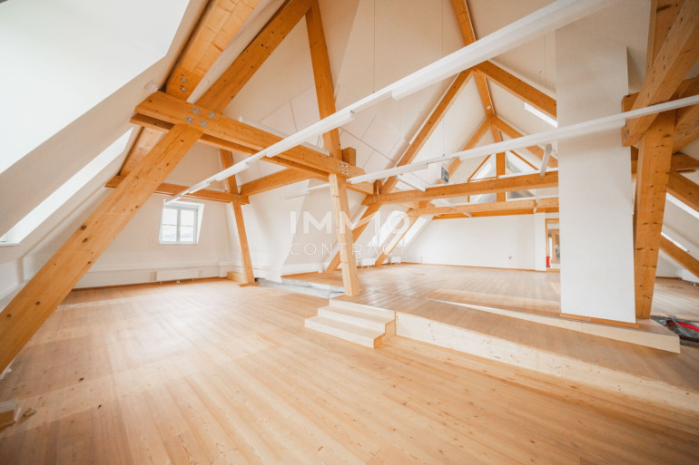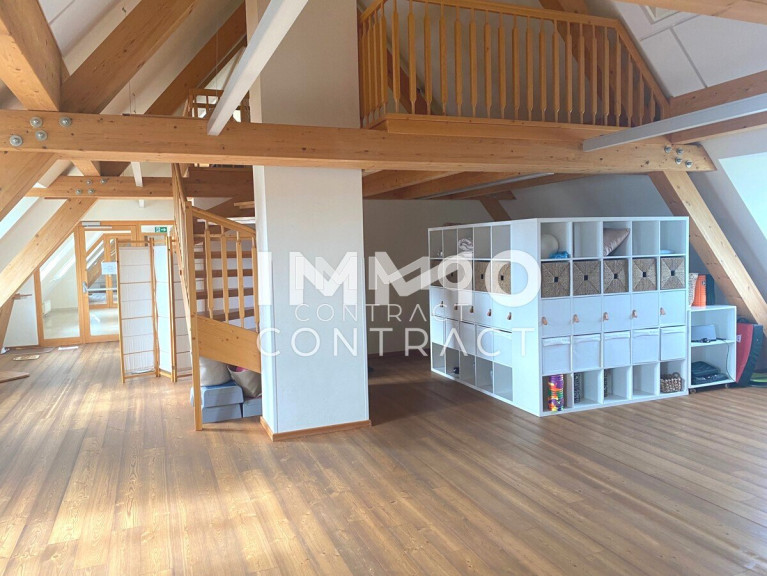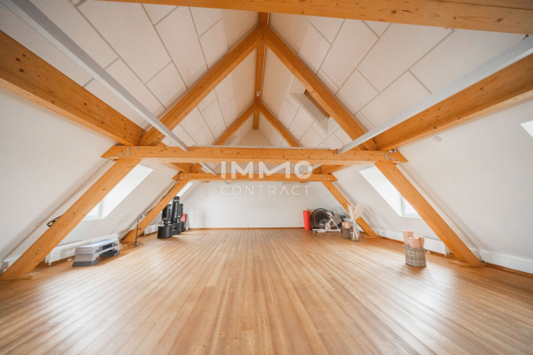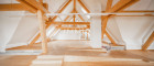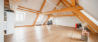 Die Räumlichkeiten sind einfach und vielseitig unterteilbar und zeichnen sich außerdem durch eine großzügig durchdachte Grundrissgestaltung sowie lichtdurchflutete Räume aus. Die freigelegten Fachwerkbalken geben dem Objekt einen gemütlichen Kontrast zur sonst modernen Flächenausführung.