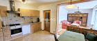 Die Küche ist mit den notwendigen Einbaugeräten ausgestattet, der anschließende Abstellraum bietet viel Stauraum und einen Waschmaschinenanschluss.