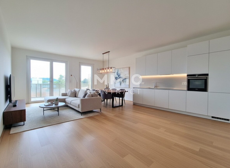 Die Ausstattung entspricht einem hochwertigen Neubau-Standard: Parkettböden in Wohnräumen, robuste Fliesen in Bad und Nebenräumen, Fußbodenheizung mit zusätzlicher Temperierung im Sommer, 3-fach verglaste Fenster, elektrisch steuerbarer außenliegender Sonnenschutz sowie eine Sicherheitseingangstür. Lift, Fahrradabstellräume und moderne Haustechnik sorgen für zusätzlichen Komfort.