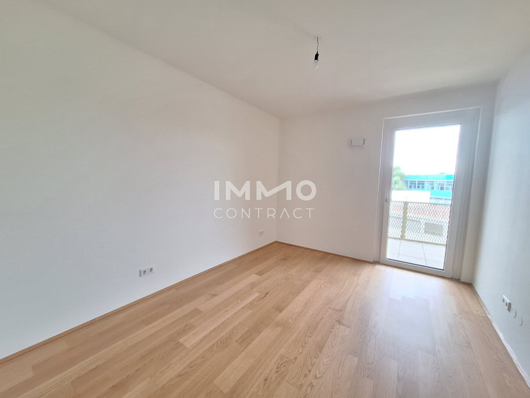 Der Mittelpunkt der Wohnung ist die offen gestaltete Wohnküche mit großzügigem Koch-, Ess- und Wohnbereich. Große Fensterflächen sorgen für viel Tageslicht und einen direkten Zugang zum Balkon, der zusätzlichen Wohnraum im Freien bietet. Das separat begehbare Schlafzimmer ist gut geschnitten und bietet ausreichend Platz für Schrank und Arbeitsplatz.