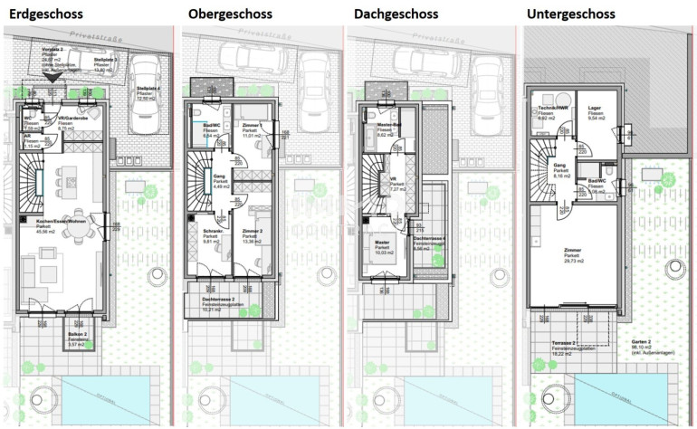 Zeitgemäßes Design mit klaren Linien, großen Fensterfronten und hochwertigen Materialien, offene Wohn- und Essbereiche mit edlen Bodenbelägen und stilvollen Designelementen, große private Gärten, Terrassen und teilweise Dachterrassen für entspannte Stunden im Freien, sowie modernste Dämmung, nachhaltige Heiztechnik und innovative Energiekonzepte - all das macht diese Häuser zu einer wertbeständigen Investition in Ihre Zukunft.