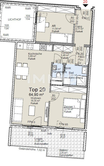 Parkett, Fußbodenheizung, Einbauküche, Personenaufzug, Dusche