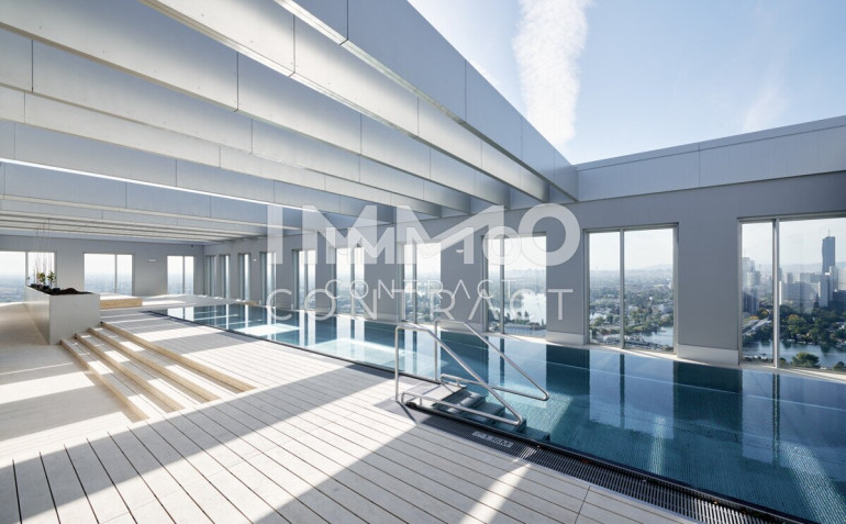 Abgerundet wird dieses durchdachte Projekt durch exklusive Annehmlichkeiten wie z.B. einen 19 m langen Rooftop-Pool mit atemberaubenden Ausblick auf die Donau und die Innenstadt, einen Fitnessraum, einen privaten Spa-Bereich mit Sauna und Ruheräumen, sowie einen exklusiv buchbaren Gemeinschaftsraum mit einer vollausgestatteten Küche.