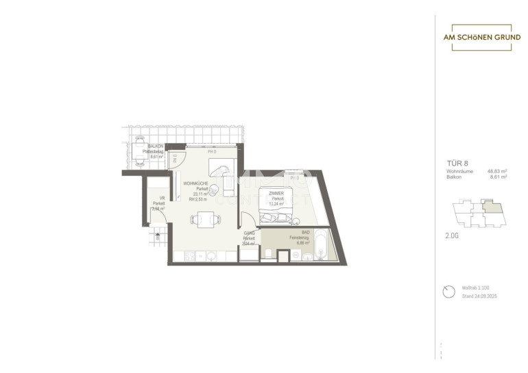 „Am schönen Grund“Mit dem Projekt „Am schönen Grund“ entsteht ein exklusives Wohnensemble aus 30 stilvollen Eigentumswohnungen, das urbanes Lebensgefühl mit naturnaher Wohnqualität vereint. Die Auswahl reicht von kompakten Garçonnièren für Singles oder Kapitalanleger bis hin zu großzügigen 4-Zimmer-Familienwohnungen – für jedes Bedürfnis die passende Lösung.