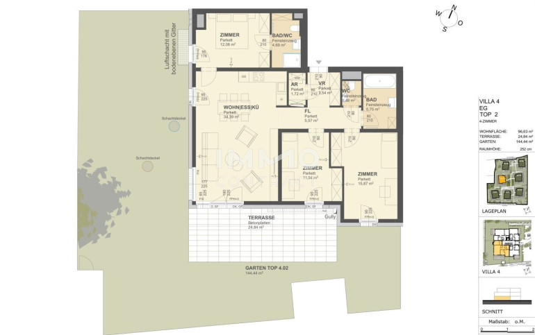 Die 2 - 4 Zimmerwohnungen bieten im Erdgeschoss, Gartenflächen zwischen 50 - 300qm.