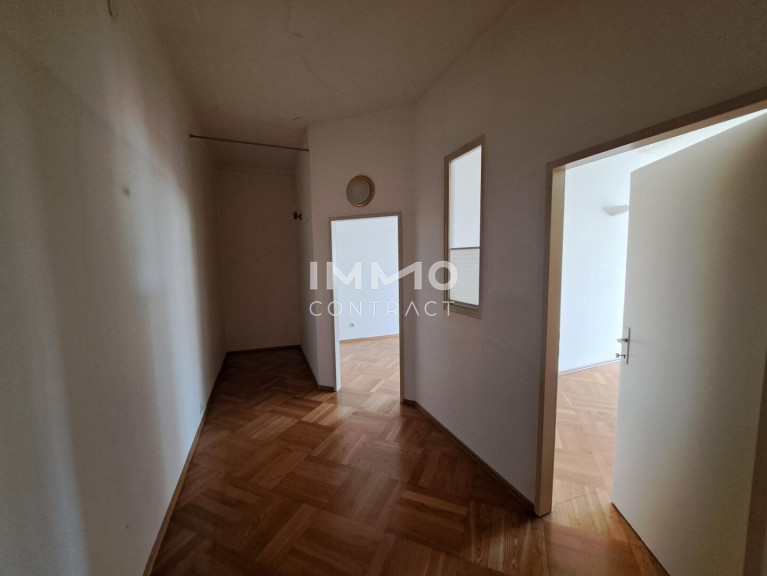 Die Wohnung ist mit klassischem Mosaikparkett ausgestattet.