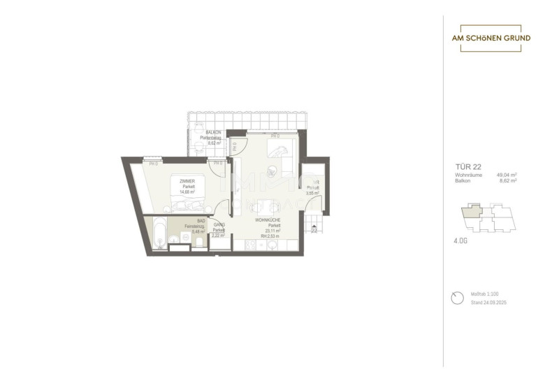 Mit dem Projekt „Am schönen Grund“ entsteht ein exklusives Wohnensemble aus 30 stilvollen Eigentumswohnungen, das urbanes Lebensgefühl mit naturnaher Wohnqualität vereint. Die Auswahl reicht von kompakten Garçonnièren für Singles oder Kapitalanleger bis hin zu großzügigen 4-Zimmer-Familienwohnungen – für jedes Bedürfnis die passende Lösung.