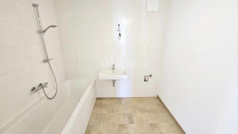 Das Haus 2 befindet sich am Anfang der Anlage. Diese kompakt geschnittene 3-Zimmer-Wohnung ist nach Südosten ausgerichtet und befindet sich im 1. OG mit Lift. Sie besteht aus einem großen Wohn-Esszimmer mit integrierter Küche und Ausgang auf den ca. 8 m2 großen Balkon. Die 2 Schlafzimmer zeigen in die ruhige Anlage nach Osten. Das Bad mit Badewanne und Waschmaschinenanschluss ist zeitlos weiß verfließt. Das große Vorzimmer und der Abstellraum bieten viel Stauraum.