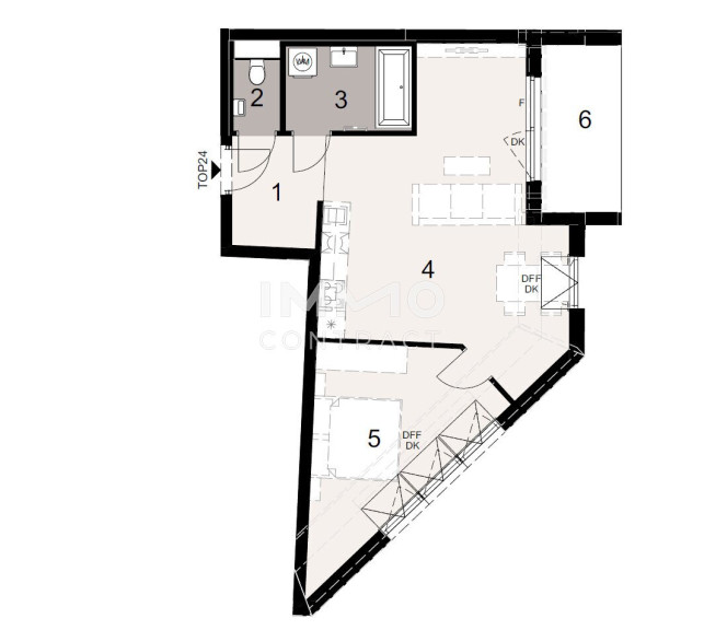 Der extravagante Grundriss schafft ein Wohnambiente, das sich von der Masse abhebt – perfekt für kreative Köpfe, die das Besondere suchen.