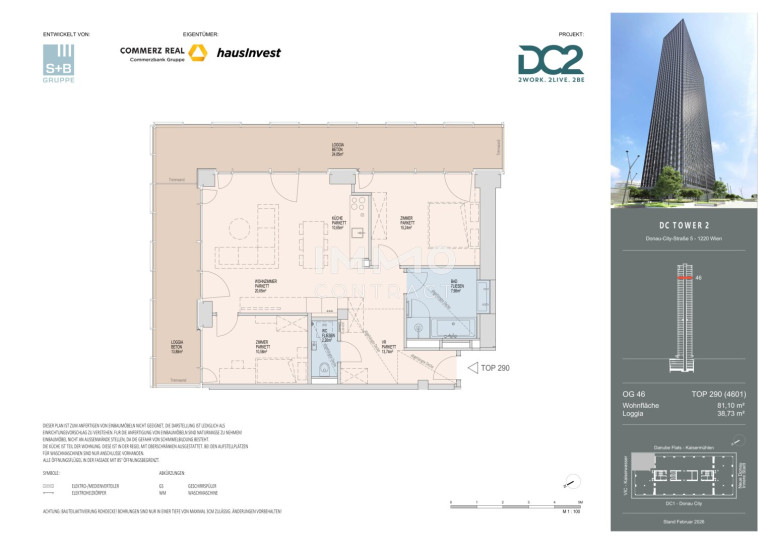 Stadt, Wasser, Weite: DC2 Tower: 46. Etage - Erstbezug