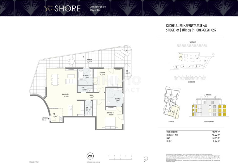 Dieses einzigartige Projekt im 19. Bezirk bietet Ihnen nicht nur ein außergewöhnliches Wohnumfeld, sondern auch eine hervorragende Anbindung an das Wiener Stadtzentrum. Hier genießen Sie die Ruhe am Wasser und sind dennoch nur 15 Minuten von der Wiener Innenstadt entfernt. Viele der beliebten traditionellen Wiener Heurigen sind von dieser Adresse für exklusives Wohnen fußläufig erreichbar und der nahegelegene Leopoldsberg und Kahlenberg bieten nicht nur einen herrlichen Anblick, sondern laden auch zu Freizeitaktivitäten ein.
