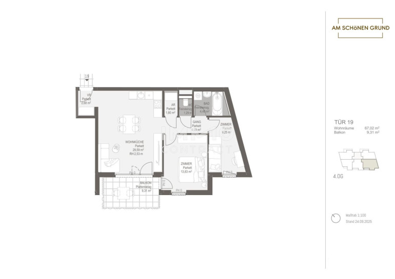 Mit dem Projekt „Am schönen Grund“ entsteht ein exklusives Wohnensemble aus 30 stilvollen Eigentumswohnungen, das urbanes Lebensgefühl mit naturnaher Wohnqualität vereint. Die Auswahl reicht von kompakten Garçonnièren für Singles oder Kapitalanleger bis hin zu großzügigen 4-Zimmer-Familienwohnungen – für jedes Bedürfnis die passende Lösung.