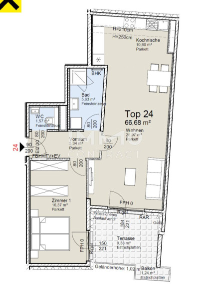 Parkett, Fußbodenheizung, Einbauküche, Personenaufzug, Dusche