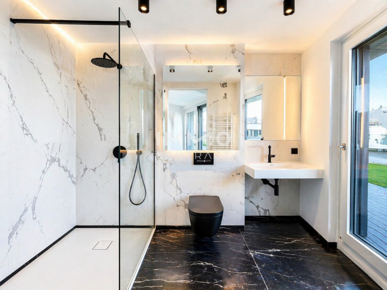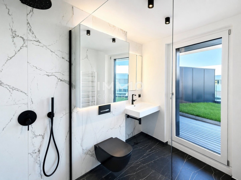 Ein besonderes Augenmerk wurde auf hochwertige Materialien und eine stilvolle Ausführung gelegt. In den Wohnräumen wurden edle Parkettböden verlegt, während die modern gestalteten Badezimmer bereits mit hochwertigen Armaturen, integrierter Beleuchtung, Spots sowie praktischen Spiegelschränken ausgestattet sind und so ein elegantes, zeitloses Ambiente schaffen.