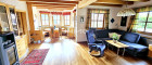 Vom Wohnzimmer betreten Sie die teilweise überdachte Terrasse und den Garten mit atemberaubendem Blick über die Wälder.