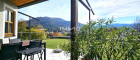 Der idyllische, pflegeleichte Garten ist nach Süden ausgerichtet und bietet einen grandiosen Blick über die umliegenden Berge.