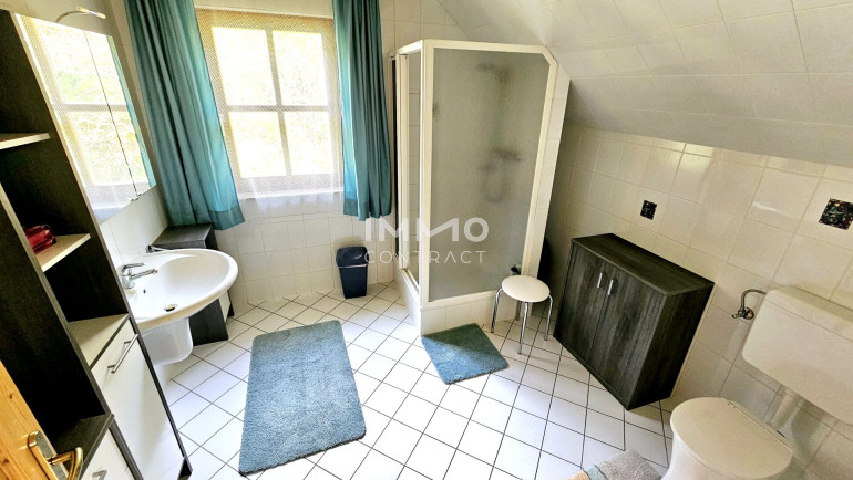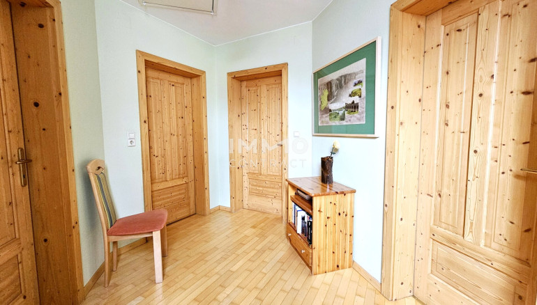 Über eine offene Holzstiege gelangen Sie ins 1. Obergeschoß mit weiteren 3 Schlafzimmern, Bad mit Dusche und WC, Vorraum und großem Südbalkon.