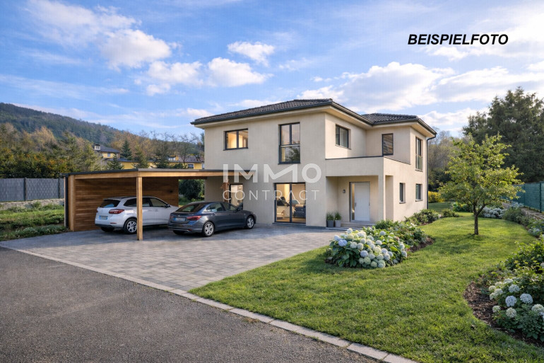 Hinweis gemäß Bebauungsvorschriften der Gemeinde Wolfsgraben: Bei offener oder gekuppelter Bauweise ist eine Bebauung in der Bauklasse I–II vorgesehen, wobei eine Mindestgrundstücksgröße von 700 m² sowie eine Mindestbreite von 16 m einzuhalten sind. Die straßenseitige Gebäudefront darf eine Gesamtlänge von maximal 20 m nicht überschreiten, wodurch eine maßvolle und ortsbildgerechte Bebauung sichergestellt wird. Pro Wohneinheit sind zwei KFZ-Stellplätze herzustellen. Garagen und Carports sind unter Berücksichtigung der geltenden Vorgaben zulässig. Die konkrete Bebauung hat entsprechend dem jeweils gültigen Flächenwidmungs- und Bebauungsplan sowie vorbehaltlich der erforderlichen behördlichen Genehmigungen zu erfolgen.