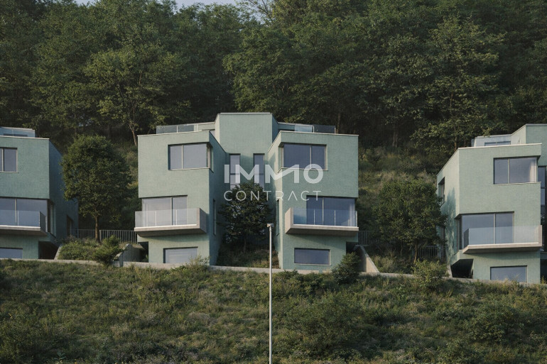 Das Projekt umfasst insgesamt zehn moderne Doppelhaushälften, die durch ein klar gegliedertes Wohnkonzept und großzügige Freiflächen überzeugen. Balkone und Terrassen schaffen wertvolle Rückzugsorte im Freien und unterstreichen den offenen, lichtdurchfluteten Charakter der Häuser. Die harmonische Architektur fügt sich dabei elegant in die Hanglage ein und eröffnet attraktive Ausblicke Richtung Donau.