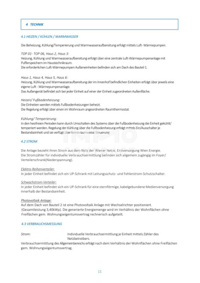 Das Projekt setzt bewusst auf Nachhaltigkeit und innovative Technologien, so finden sich z.B. am Dach Photovoltaikanlagen, die zur unterstützenden elektrischen Versorgung des Hauses beitragen. Die Wärme- und Kälteversorgung der Wohnungen erfolgt über eine Luftwärmepumpe, die die Fußbodenheizung und -kühlung speist. Dies sorgt nicht nur für ein angenehmes Raumklima, sondern reduziert auch den Energieverbrauch. In den DG-Wohnungen sind zusätzlich bereits Leerverrohrungen für eine Klimaanlage vorbereitet.