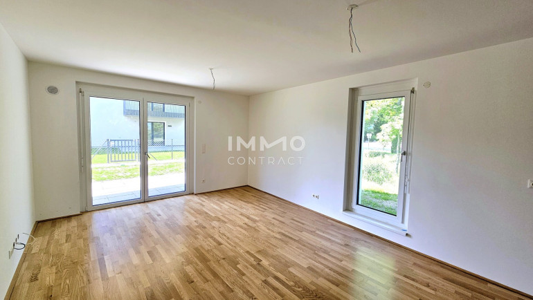 Diese barrierefreie, helle und sehr ruhige ca. 90 m2 große 4-Zimmer-Wohnung im Erdgeschoß bietet eine große Terrasse, einen ca. 100 m2 Eigengarten und ist nach Südwesten ausgerichtet. Sie verfügt über eine großes Wohn-/Esszimmer mit Küchenbereich, 3 Schlafzimmer, 2 Bäder, Gäste-WC, Abstellraum und geräumigen Vorraum.