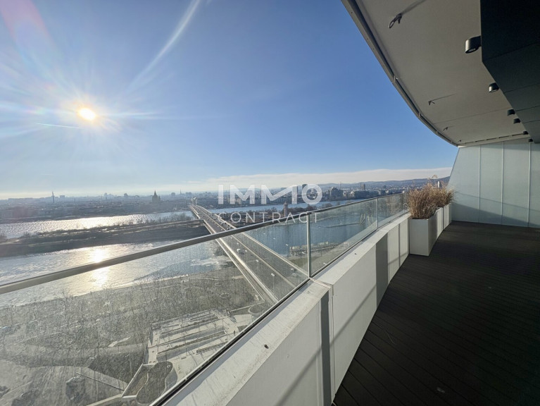Außergewöhnlicher Balkon, Sonne fast den ganzen Tag, Ausblick wohin das Auge reicht: Neubau Erstbezug DANUBEFLATS