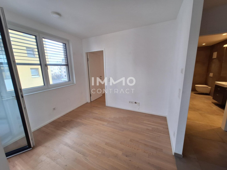 Der hochwertige Parkettboden verleiht der Wohnung einen warmen und zeitlosen Charakter. Die elegante Einbauküche punktet mit hochwertigen Miele-Geräten und einer noblen Steinarbeitsplatte. Die elektrischen Raffstores runden das schicke Gesamtpaket ideal ab.