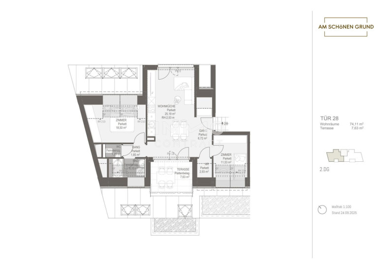Mit dem Projekt „Am schönen Grund“ entsteht ein exklusives Wohnensemble aus 30 stilvollen Eigentumswohnungen, das urbanes Lebensgefühl mit naturnaher Wohnqualität vereint. Die Auswahl reicht von kompakten Garçonnièren für Singles oder Kapitalanleger bis hin zu großzügigen 4-Zimmer-Familienwohnungen – für jedes Bedürfnis die passende Lösung.