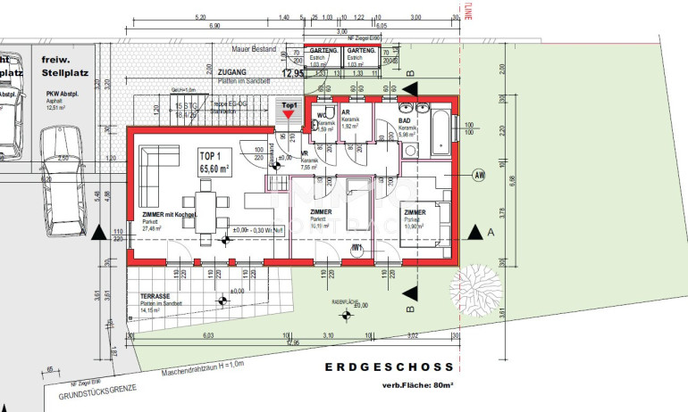 • 22,85 m² große Terrasse mit ca. 125m² Eigengarten