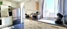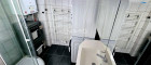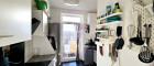 Das Bad ist mit einer Regendusche und modernen Einbaumöbeln ausgestattet und bietet genug Platz für Ihre Waschmaschine.