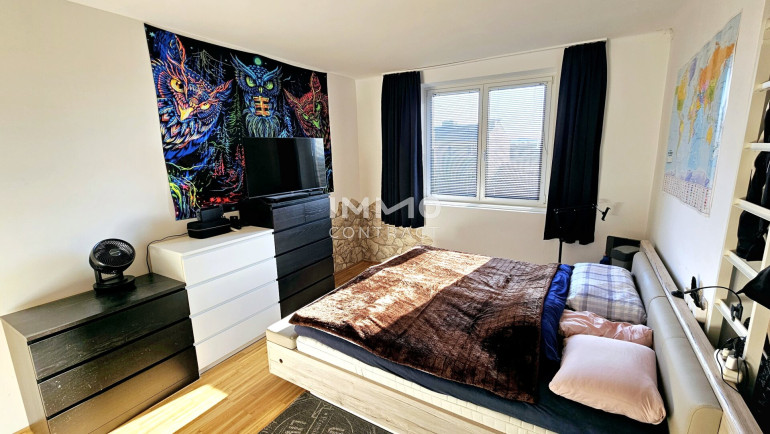 Die Wohnung besteht aus einem geräumigen Wohnzimmer, 2 großen Schlafzimmern, Küche mit Essecke, Bad, separatem WC, Balkon und einem Vorzimmer, von welchem alle Zimmer zentral zu begehen sind.