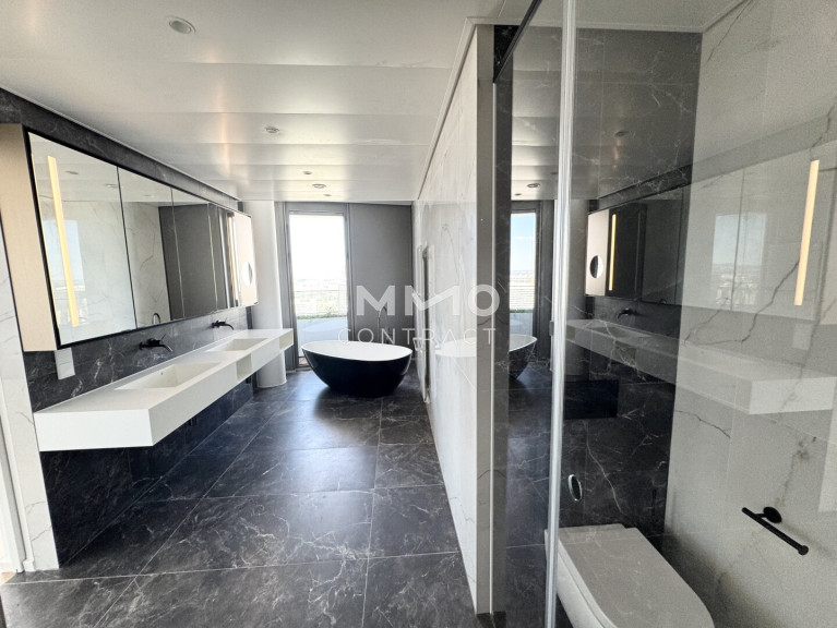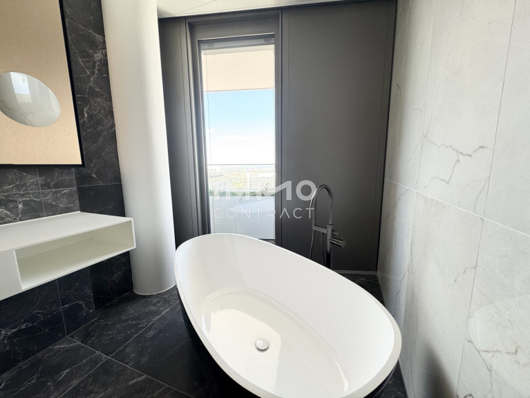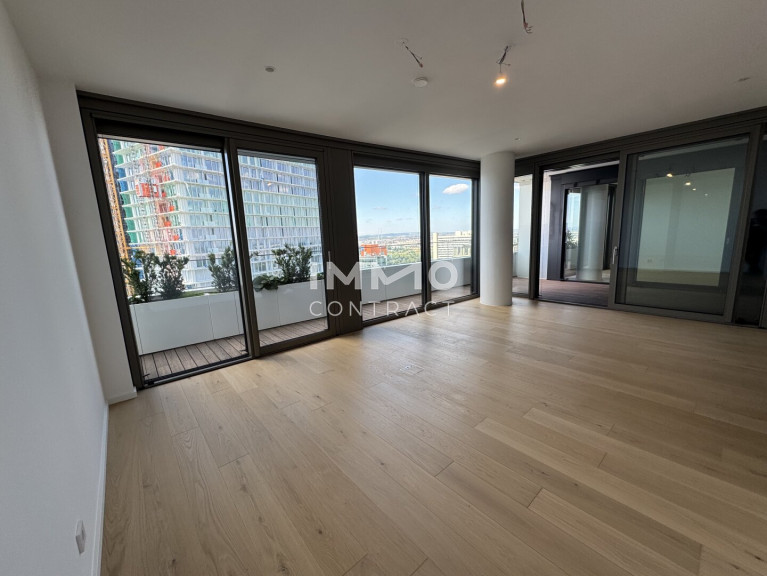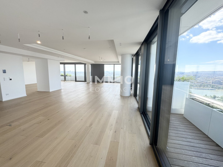 Diese luxuriöse 6-Zimmer-Wohnung bietet modernen Wohnkomfort auf höchstem Niveau. Besonders hervorzuheben ist die ca. 120 m² große Wohnküche, der perfekte Raum für kulinarische Erlebnisse und gesellige Zusammenkünfte. Große Fensterfronten bieten einen beeindruckenden Panoramablick auf die Innenstadt, die Donau und den Kahlenberg und sorgen für eine helle, lichtdurchflutete Atmosphäre. Der Masterbedroom ist ein echtes Highlight: Er verfügt über ein großzügiges, en-suite Bad mit einer freistehenden Badewanne, einer luxuriösen Walk-in-Dusche und einer privaten Sauna – ideal für entspannende Stunden in Ihrem eigenen Wellnessbereich. Zusätzlich bietet die Wohnung zwei weitere stilvoll ausgestattete Bäder, die alle mit exklusiven Armaturen und modernen Akzenten überzeugen. Die sechs Zimmer lassen sich individuell gestalten, sei es als Schlafzimmer, Arbeitszimmer oder Gästezimmer. Eine begehbare Garderobe sorgt für praktischen Stauraum und erhöht den Komfort der Wohnung.