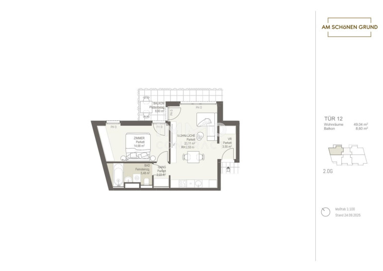 „Am schönen Grund“Mit dem Projekt „Am schönen Grund“ entsteht ein exklusives Wohnensemble aus 30 stilvollen Eigentumswohnungen, das urbanes Lebensgefühl mit naturnaher Wohnqualität vereint. Die Auswahl reicht von kompakten Garçonnièren für Singles oder Kapitalanleger bis hin zu großzügigen 4-Zimmer-Familienwohnungen – für jedes Bedürfnis die passende Lösung.