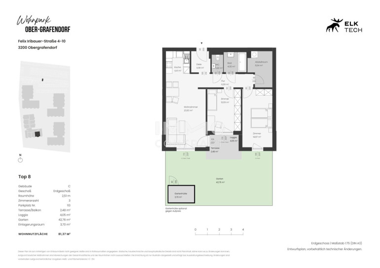 Der attraktive Wohnpark befindet sich im malerischen Ort Ober-Grafendorf, eingebettet in die reizvolle Landschaft Niederösterreichs. Die Region überzeugt durch ihre harmonische Mischung aus ländlicher Idylle und urbanem Komfort. Hier genießen Sie die Ruhe der Natur, ohne auf die Vorzüge städtischer Annehmlichkeiten verzichten zu müssen. In der unmittelbaren Umgebung finden Sie eine gute Infrastruktur mit Einkaufsmöglichkeiten, Restaurants und Cafés, die den täglichen Bedarf decken. Dank der Nähe zu Schulen und Kindergärten eignet sich die Lage ideal für Familien. Darüber hinaus besticht der Ort durch seine hervorragenden Verkehrsanbindungen an die umliegenden Städte, was Pendlern ein entspanntes Erreichen ihres Arbeitsplatzes ermöglicht. Freizeitliebhaber schätzen die zahlreichen Naherholungsgebiete insbesondere den Ebersdorfer See, die zu ausgedehnten Spaziergängen und sportlichen Aktivitäten einladen. Kulturfreunde kommen ebenfalls auf ihre Kosten, da die Region reich an kulturellen Veranstaltungen und historischen Sehenswürdigkeiten ist.