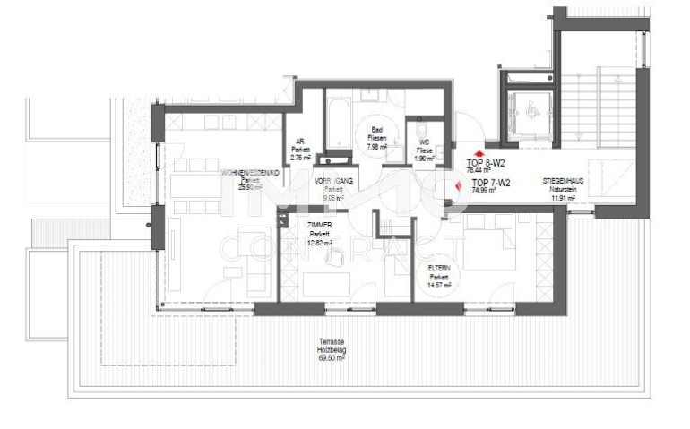 Mehr Als Wohnen ENTFALTEN SIE IHRE WOHNTRÄUME Wohnung WB 2 Top 7 74,98 m² mit großer Dachterrasse