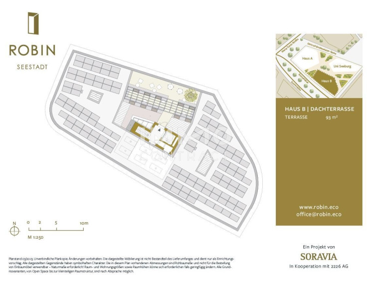 ROBIN Seestadt kombiniert bewährte Bautradition mit innovativen Low-Tech-Lösungen und bietet in diesem neuen umweltfreundlichen & kosteneffizienten Ensemble den nachhaltigsten Workspace der Stadt. Das energieautarke Gebäude kommt ganz ohne Kosten für Heizung- & Kühlung aus. ROBIN Mieter profitieren nicht nur ganzjährig vom per Sensortechnik gesteuerten Raumklima mit optimaler Luftqualität, sondern vor allem auch von der minimalen Kostenbelastung. Der Gesamt-CO2-Ausstoß ist – ebenso wie die Betriebskostenbelastung – um ca. 40% niedriger als bei konventionellen Gebäuden.