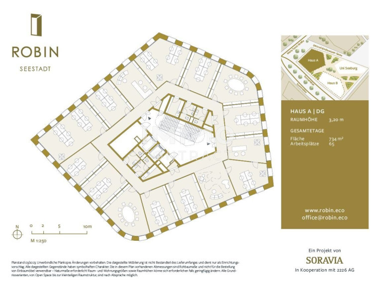 ROBIN Seestadt kombiniert bewährte Bautradition mit innovativen Low-Tech-Lösungen und bietet in diesem neuen umweltfreundlichen & kosteneffizienten Ensemble den nachhaltigsten Workspace der Stadt. Das energieautarke Gebäude kommt ganz ohne Kosten für Heizung- & Kühlung aus. ROBIN Mieter profitieren nicht nur ganzjährig vom per Sensortechnik gesteuerten Raumklima mit optimaler Luftqualität, sondern vor allem auch von der minimalen Kostenbelastung. Der Gesamt-CO2-Ausstoß ist – ebenso wie die Betriebskostenbelastung – um ca. 40% niedriger als bei konventionellen Gebäuden.