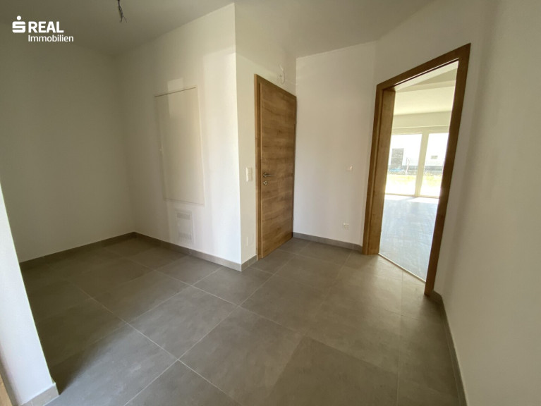 Bereits beim Betreten des Hauses empfängt Sie ein freundlicher Vorraum mit Garderobenbereich. Auf dieser Ebene befinden sich außerdem ein Technikraum sowie ein separates WC.