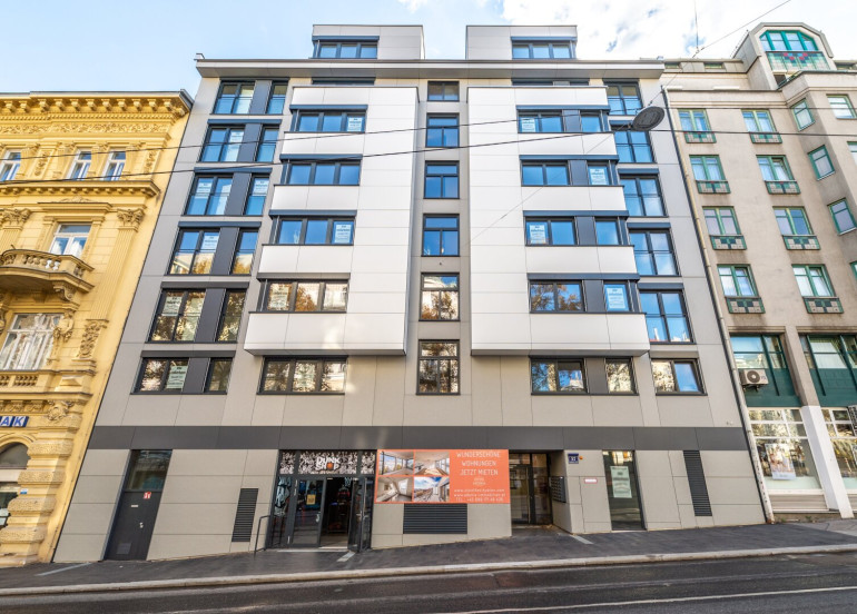 Zur befristeten Vermietung gelangt diese helle, toll aufgeteilte und sehr hochwertig ausgestattete ca. 58 m² große Neubauwohnung mit Balkon im 5. Stock eines jetzt fertiggestellten Neubaus in absoluter Bestlage im 06. Wiener Gemeindebezirk, unmittelbar beim Haus des Meeres gelegen.