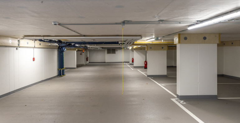 Das Haus verfügt über eine großzügige Tiefgarage. Die Anmietung eines Stellplatzes kostet monatlich 120,00 € inkl. BK und USt.