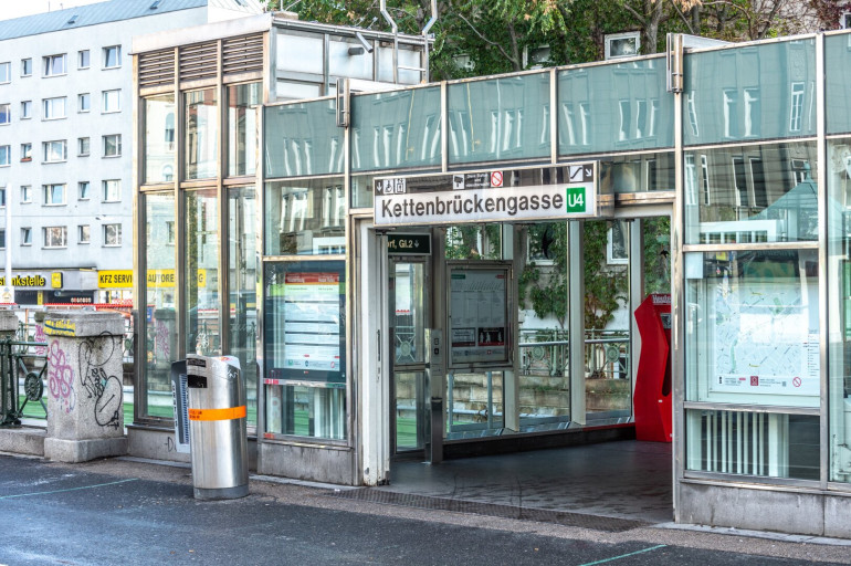Die Wohnung ist mit den Buslinien 13A, 57A und N71 sowie mit den Ubahn-Stationen U3 Neubaugasse (5 Gehminuten), U4 Kettenbrückengasse (5 Gehminuten) und U6 Gumpendorferstraße (20 Gehminuten) perfekt an das öffentliche Verkehrsnetz angebunden.