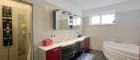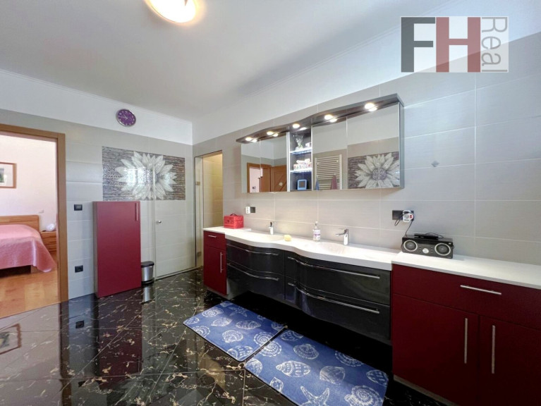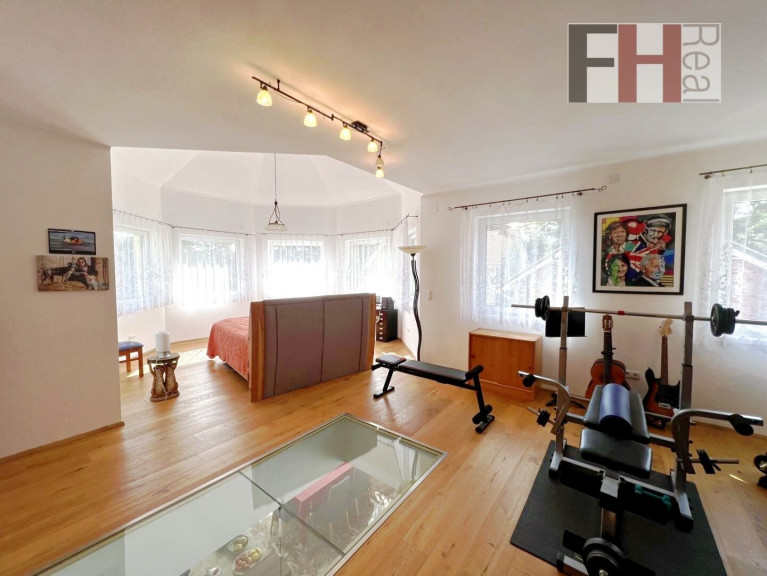 Das Obergeschoss gliedert sich in das knapp 60m² große, lichtdurchflutete Erkerzimmer, welches ohne großen Aufwand, mit einer Zwischenwand in 2 geräumige Schlafzimmer, unterteilt werden kann. Auch die 2 weiteren Schlafzimmer sind vernünftig dimensioniert und jeweils mit einem Badezimmer en suite ausgestattet. Der Masterbedroom integriert noch eine begehbare Garderobe und ist mit dem knapp 13m² Badezimmer mit Badewanne mit Whirlpoolfunktion in Summe sogar mehr als 36m² groß. Ein besonderer Wohlfühlbereich mit viel Privatsphäre. Ergänzt wird diese Ebene mit dem zentralen Vorraum, einer Toilette, einen Abstellraum und dem Eingangsbereich.
