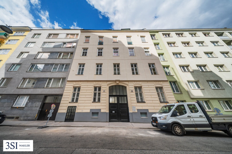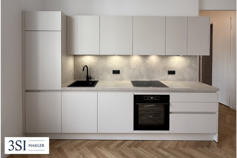 Bei dieser ansprechenden, ,in einer eleganten Altbauliegenschaft unweit des Schlosses Belvedere gelegenen unweit des Schlosses Belvedere gelegenen Altbauliegenschaft, handelt es sich um eine hochwertig sanierte 2-Zimmer-Erstbezugswohnung im Hochparterre (fast 1.OG.) in Hofruhelage. Der Grundriss bietet eine optimale Aufteilung der insgesamt rund 40 m² Wohnfläche: Über den Vorraum gelangt man in das Badezimmer mit Dusche und Toilette sowie in die einladende voll ausgestatete Wohnküche. Daran angrenzend befindet sich das großzügige Schlafzimmer. Alle Räume sind südwestlich in den begrünten und ruhigen Innenhof ausgerichtet.