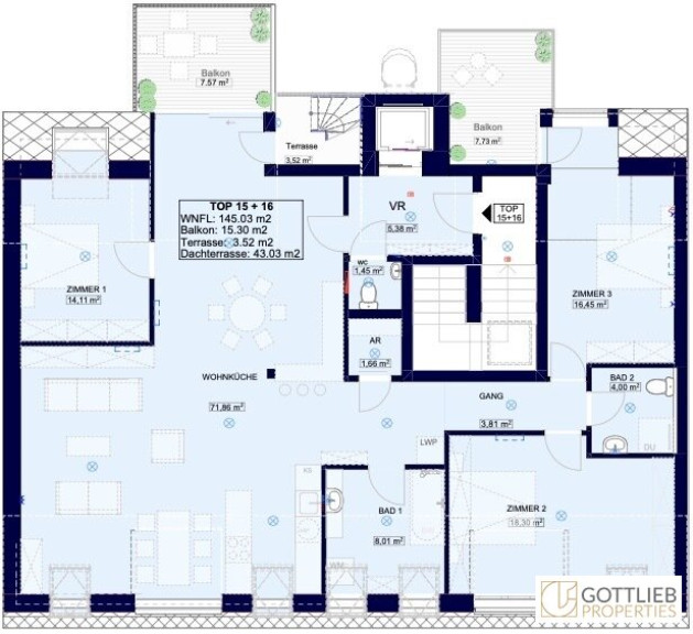 + ca. 43,03 m2 Dachterrasse