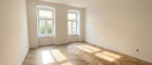Über einen Vorraum gelangen Sie ins Badezimmer mit Badewanne und Toilette, in die geräumige Küche sowie ein Schlafzimmer. Diese Räume sind südseitig zum ruhig gelegenen Innenhof ausgerichtet und haben einen direkten Ausgang auf die ca. 6,00 m² große Loggia und die ca. 23,00 m² große Terrasse. Das Wohnzimmer mit ca. 20,00 m² und ein weiteres Schlafzimmer erreicht man über die Küche und komplettieren diese somit den Grundriss dieser sehr gut geschnittenen Altbauwohnung.