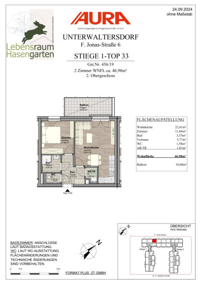 ERSTBEZUG - Schöne 2-Zimmerwohnung mit Balkon Richtung Nordwesten im Hasengarten in Unterwaltersdorf.