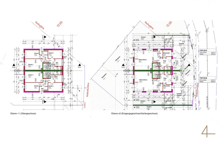 Das genehmigte Projekt umfasst moderne Doppelhäuser mit großzügigen Eigengärten, Terrassen und Balkonen. Sämtliche Einreichpläne und Bewilligungen liegen vor. Sie erwerben ein baureifes Projekt ohne Planungs- und Genehmigungsrisiko.