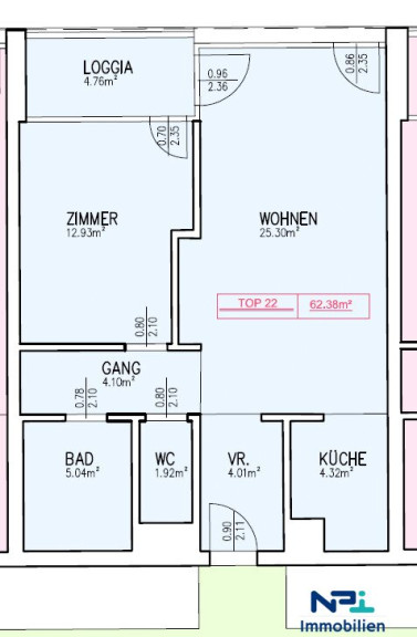 Es steht Ihnen eine 2-Zimmer-Wohnung im 2. Liftstock zur Verfügung, welche 62,25 m² Wohnnutzfläche inkl. 5 m² Loggia aufweist. Die Wohnung zeichnet sich vor allem durch das großzügige Raumgefühl und die Verarbeitung hochwertiger Materialien aus. Sie betreten die Wohnung durch einen großzügigen Eingangsbereich, über welchen Sie linkerhand in das Schlafzimmer mit Zugang zur Loggia sowie ins Badezimmer mit Dusche und WC gelangen. Eine Abstellmöglichkeit mit Waschmaschinenanschluss ist platzsparend zwischen Vorraum und Badezimmer verbaut. Wenn Sie geradeaus weitergehen, gelangen Sie in den lichtdurchfluteten Wohn- und Essbereich samt moderner Einbauküche mit AEG-Geräten. Von diesem gelangen Sie ebenfalls auf die süd-west-seitige Loggia. Von der zentralen Lage hört man im Wohnungsinneren praktisch gar nichts. Ein ca. 5 m² großes Kellerabteil sowie ein allgemeiner Fahrrad- sowie Kinderwagenraum stehen Ihnen zur Verfügung. Internetanschlüsse über Kabel sowie eine SAT-Anlage sind ebenfalls vorhanden.