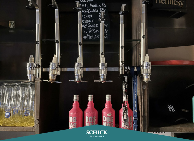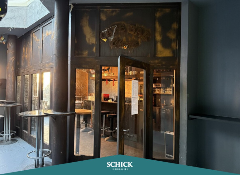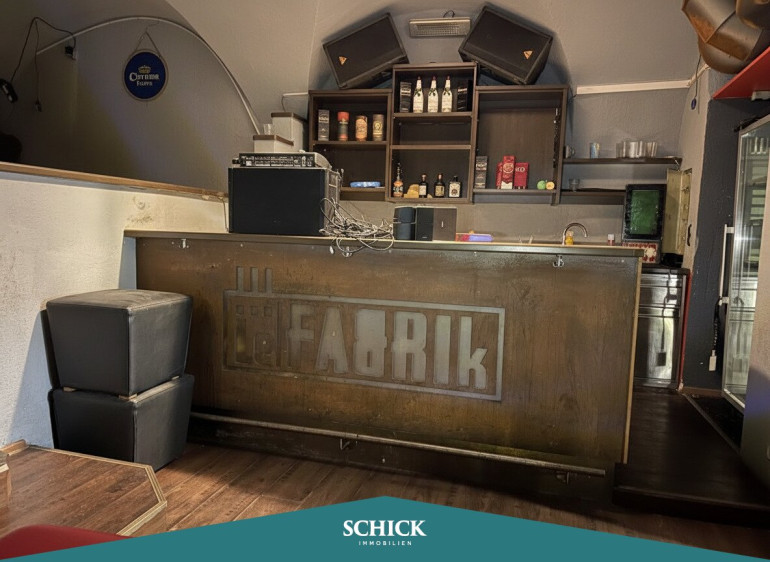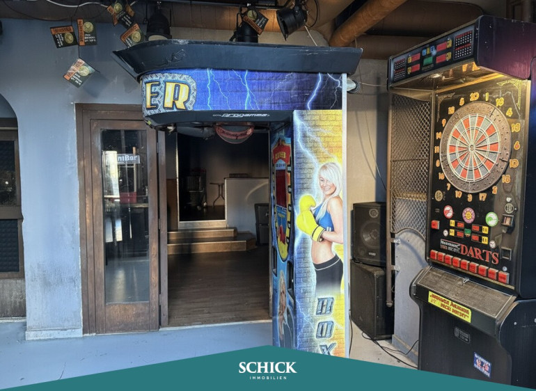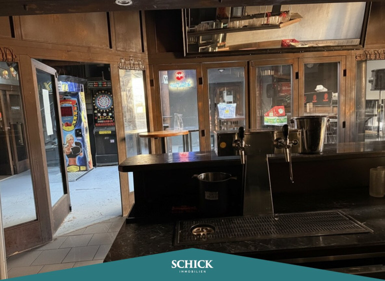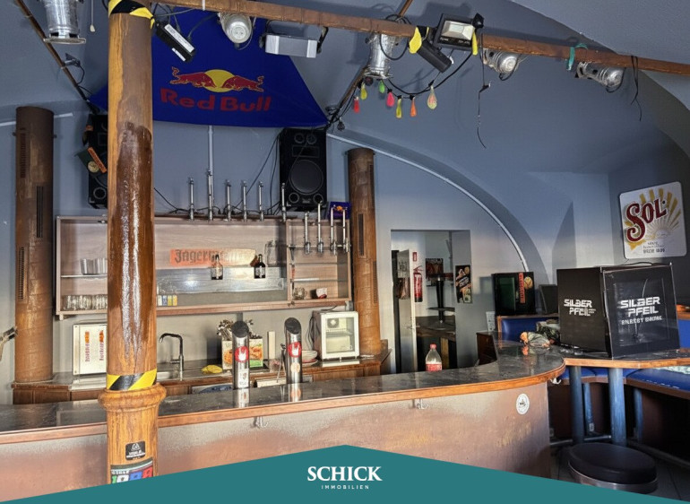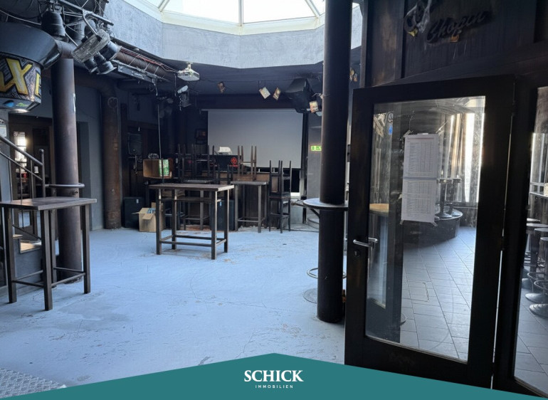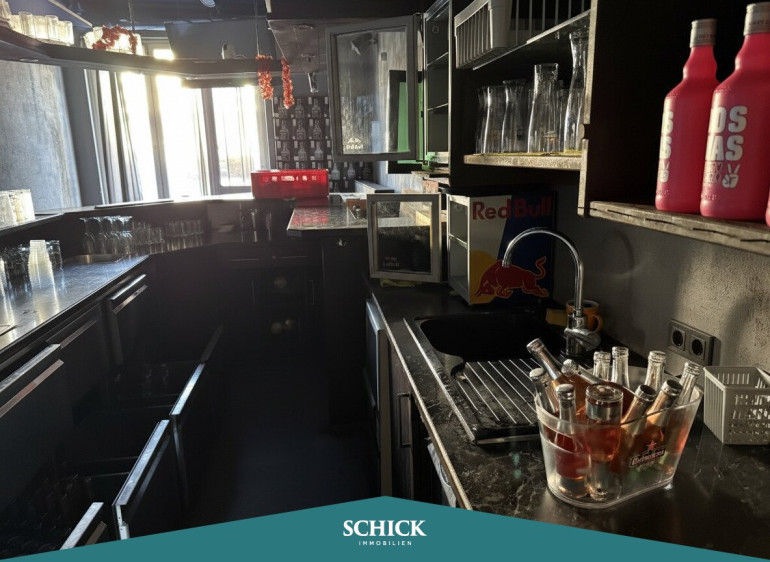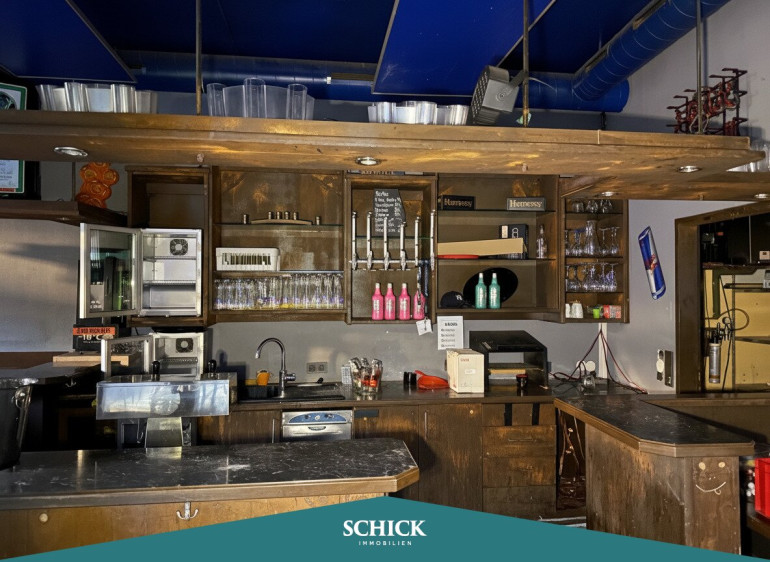 - Teilweise Mobiliar vorhanden: Theken, Barhocker, Stehtische, Sitzmöbel